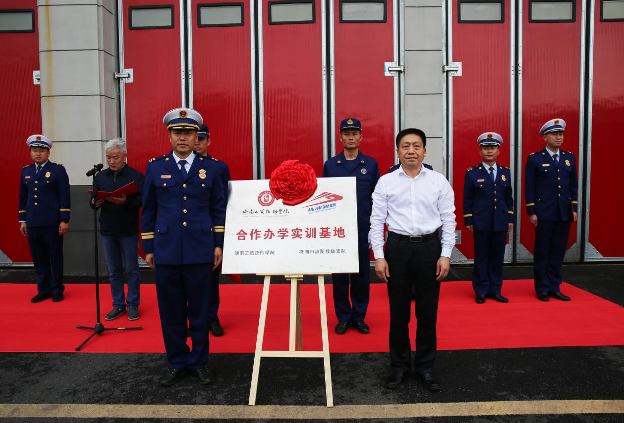 当天上午,学院党委书记张格林,市消防救援支队党委书记、政治委员谷小波共同为“湖南工贸技师学院与株洲市消防救援支队校外实训基地”揭牌。